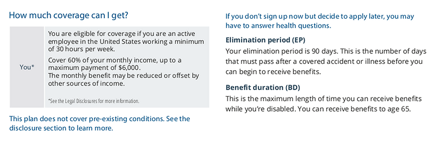 During your initial eligibility period only, you can receive coverage up to the Guaranteed Issue amounts without having to provide Evidence of Insurability (EOI, or information about your health). Coverage amounts that require EOI will not be effective unless approved by the insurance carrier.